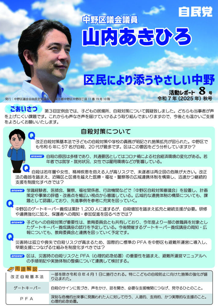 自由民主党新人 中野区議会議員 山内あきひろ公式ホームページです。